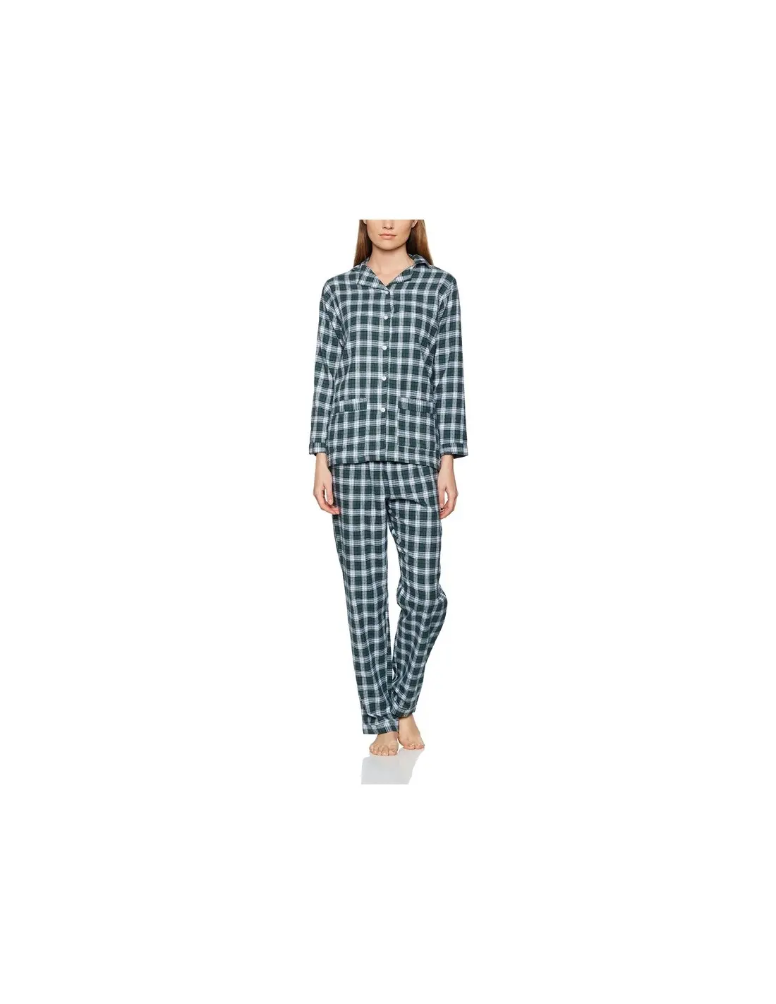 Pigiama Lucy in flanella è composto da una giacca con bottoni e da pantaloni in tessuto. Il taglio tradizionale è arricchito da fantasie classiche che donano semplicità al pigiama.